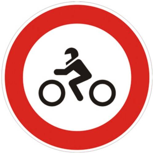 Segnale in lamiera cartello stradale disco d.60 transito vietato ai motocicli figura ii 56 art.117 classe 1