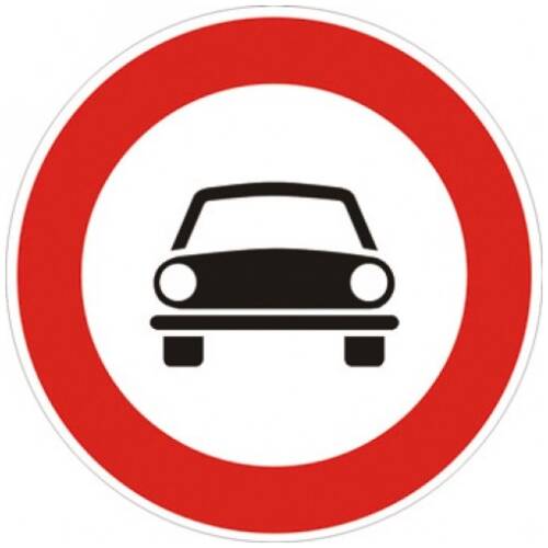 Segnale in lamiera cartello stradale disco d.60 transito vietato a tutti gli autoveicoli figura ii 58 art.117 classe 1