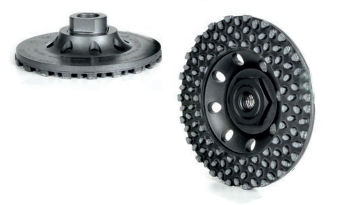disco platorello diamantato universale, modello plume 100 di montolit, per effettuare lavori di sgrossatura e rimozione su materiali compatti come pietre, calcestruzzo, grès porcellanato e in genere per i più comuni materiali edili.