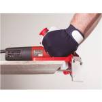 grazie al suo corpo in alluminio pressofuso, alla piastra di scorrimento realizzata in materiale plastico antigraffio e al carter di protezione in policarbonato la smussatrice risulta leggera e maneggevole, arrivando a pesare solamente solo 4.7kg.