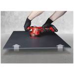 la ventosa, attivabile semplicemente con una leva ad eccentrico permette il sollevamento sino a 25 kg e puΓ² essere mantenuta in depressione per vibrare la piastrella una volta posata, mentre viene consigliato lo sgancio della ventosa per poter eseguire lβoperazione di vibratura con movimento circolare dallβinterno della piastrella verso lβesterno indicato in particolare per grandi formati o lastre sottili.