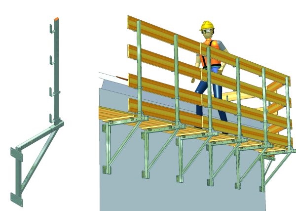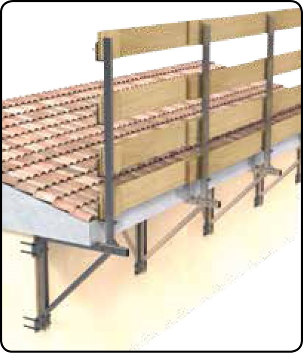Pedonabilità senza ponteggio: utilizzabile per creare piani pedonabili perimetrali, senza l’utilizzo del sottoponte. Con l’ausilio della prolunga è possibile estendere la pedonabilità fino a 1m, purché siano rispettate le indicazioni riportate sul manuale di istruzione. Utile anche semplicemente come parapetto di protezione. Adatto per calcestruzzo, legno, ecc… (pendenze non superiori a 30°).