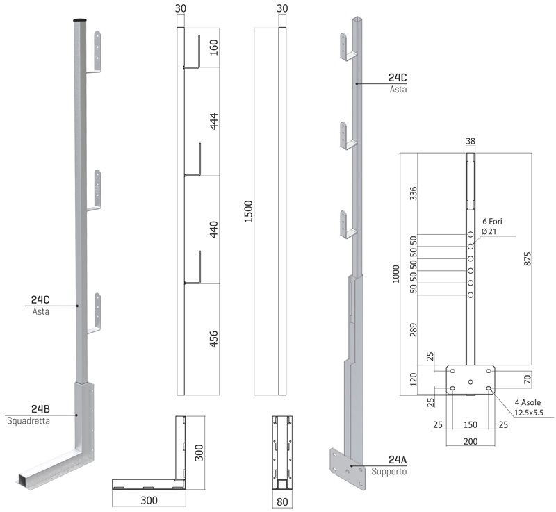 Peso 24B+24C 5,7 Kg/ 24A+24B 7,5 Kg – Zincato.