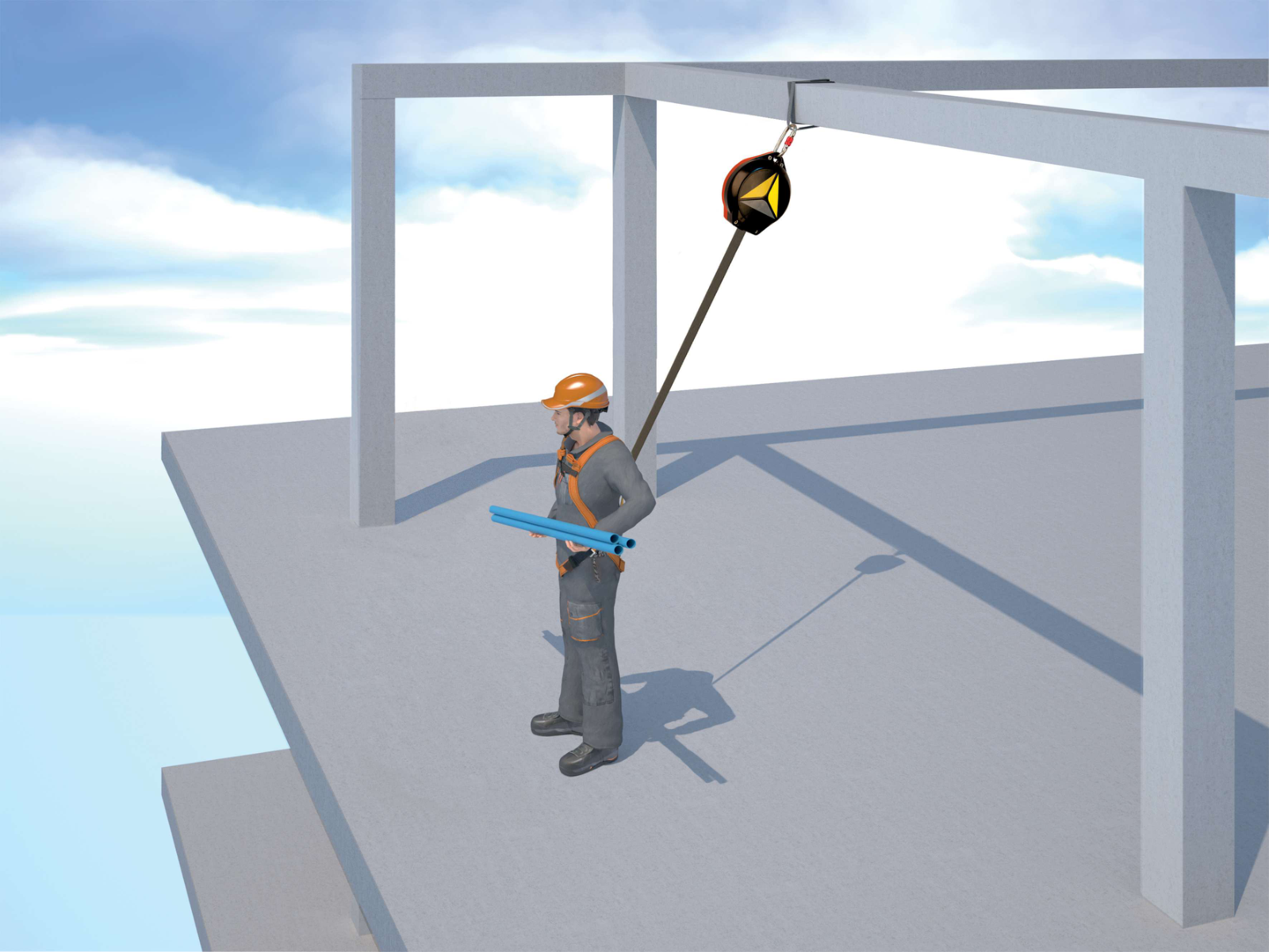 Anticaduta a richiamo automatico a cinghia per uso verticale e orizzontale, per spostamenti fino a 6 metri