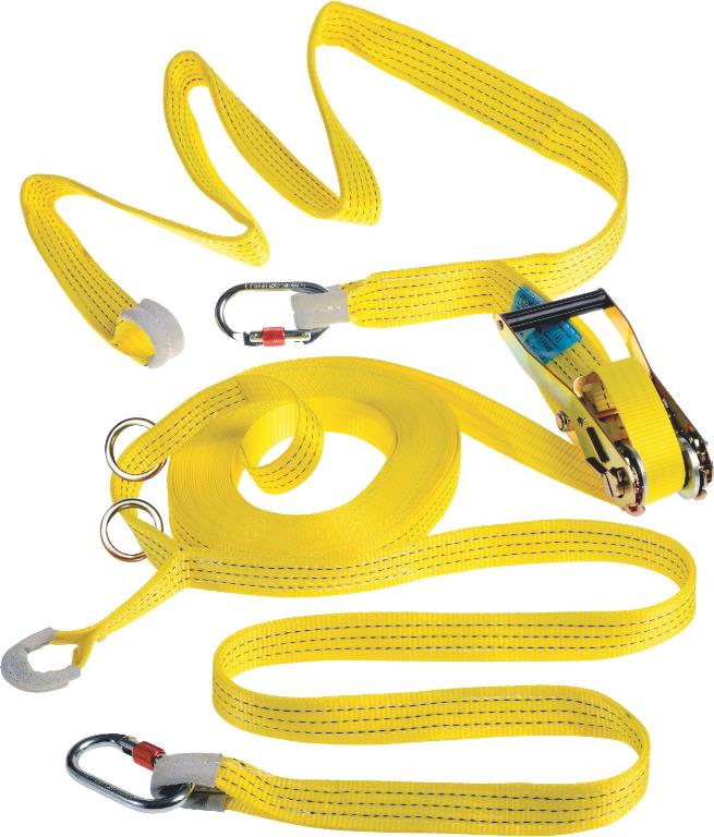 Linea di vita temporanea in cinghia da 2 a 20 metri, che consente di far lavorare in sicurezza 2 utenti contemporaneamente, molto facile da installare grazie al suo cricchetto.
