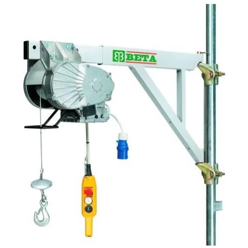 ELEVATORE BETA TM 235 PROFESSIONALE  PER EDILIZIA PORTATA MAX 200 KG VELOCITA’ DI SALITA 23 MT/MIN IDEALE PER MANUTENZIONI AI PIANI ALTI CON SUPPORTO TELESCOPICO ALLUNGABILE CHE NE PERMETTE L’ESTENSIONE PER SUPERARE AGEVOLMENTE OSTACOLI. MOTORE SILENZIOSO CON RIDUTTORE A BAGNO D’OLIO DOTATO DI 25 MT DI FUNE DIAM 5 MM MOTORE MONOFASE 220 VOLT DA 1350 WATT PULSANTIERA ASPORTABILE PESO TOTALE 40 KG COMPLETO DI SUPPORTO TELESCOPICO E COPPIA MORSETTI ATTACCO A PALO