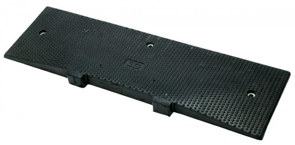 realizzato in mescola di pvc riciclato, incastri di congiunzione, colore nero bugnato antisdrucciolo, misure ht. 5x30x90 cm. con 3 fori per fissaggio (viti e tasselli esclusi).
