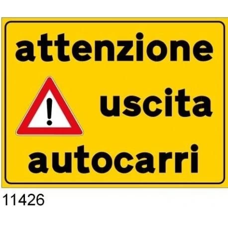 Segnale temporaneo da cantiere 90×60 attenzione uscita autocarri