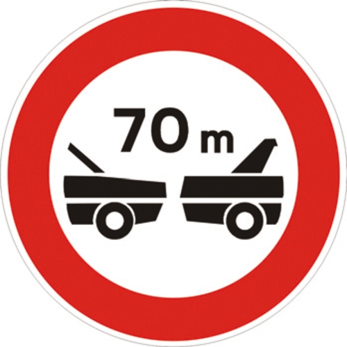 Vieta di seguire il veicolo che precede ad una distanza inferiore a quella indicata in metri sul segnale.
