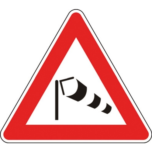 Presegnala un tratto di strada soggetto a possibili forti raffiche di vento, come su viadotti, uscite di gallerie, fine trincee, e situazioni simili.