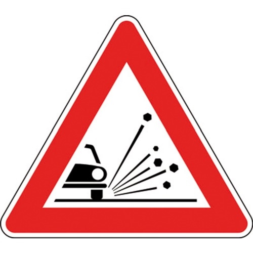 Presegnala la presenza sulla pavimentazione di ghiaia, pietrisco, graniglia, od altro materiale instabile che puΓ² diminuire pericolosamente l’aderenza del veicolo od essere proiettato a distanza